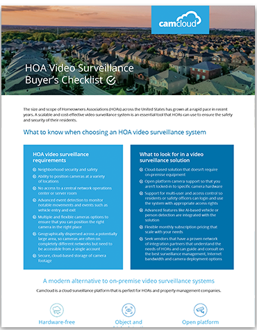 Modernize your HOA security cameras with a cost-effective, and easy-to-deploy cloud-based solution. Download our Video Security Checklist for HOA’s and property managers.