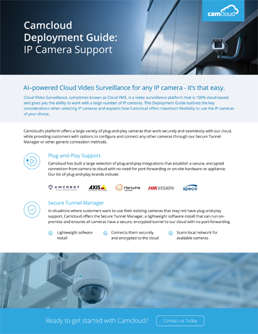 Read our Deployment Guide to find out how Camcloud offers maximum flexibility to use the IP cameras of your choice.